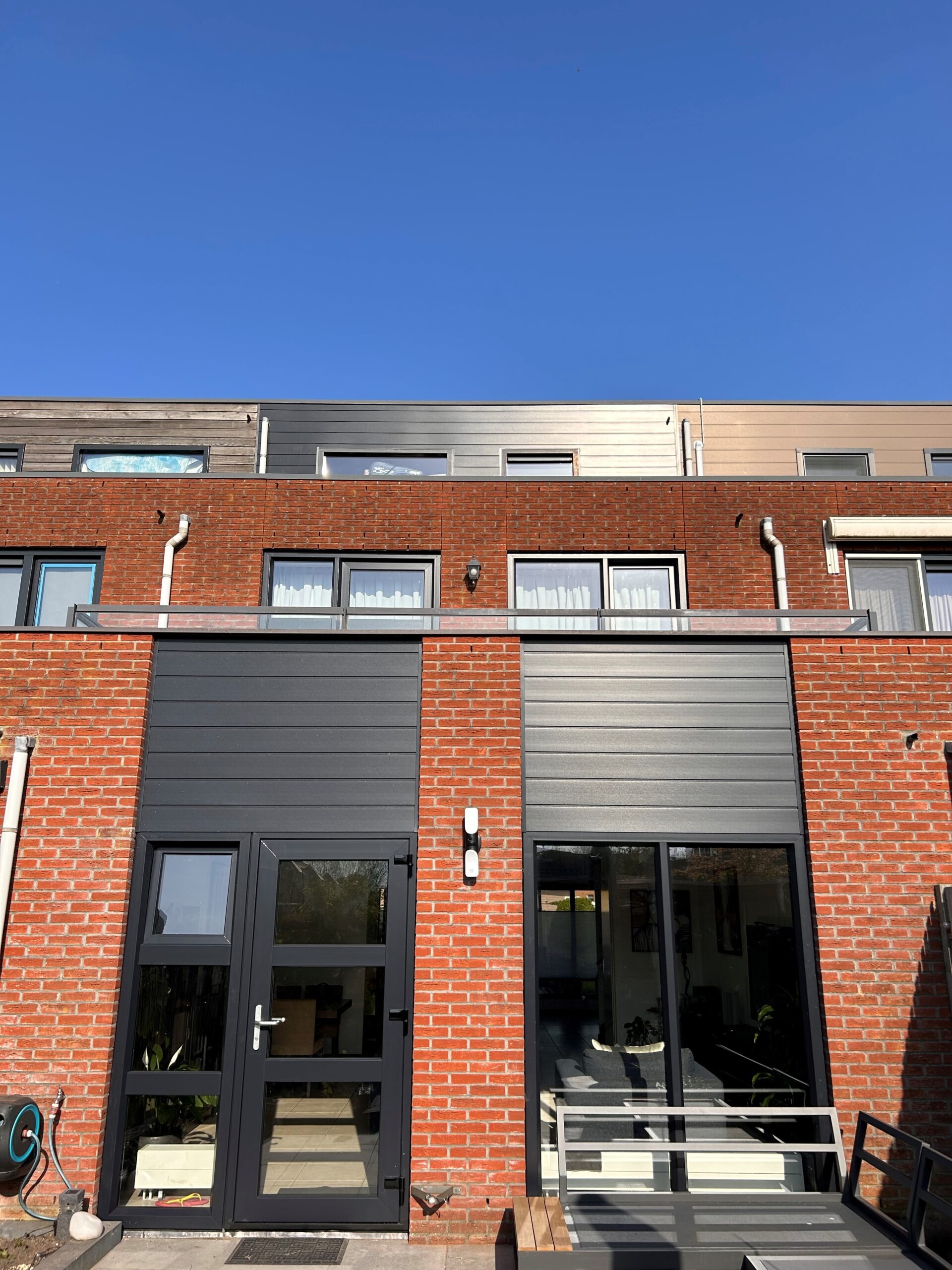 Kleur gevelbekleding: RAL 7016 (antraciet) met houtnerf