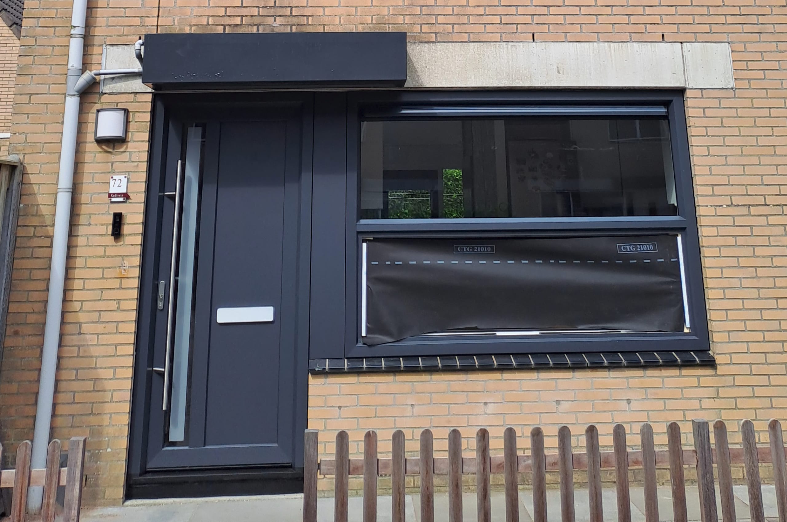 Bijzonderheden: Deze klant heeft gekozen voor privacyglas met een kijkrand, een RVS-stang van 140 centimeter en een bijpassende brievenbus